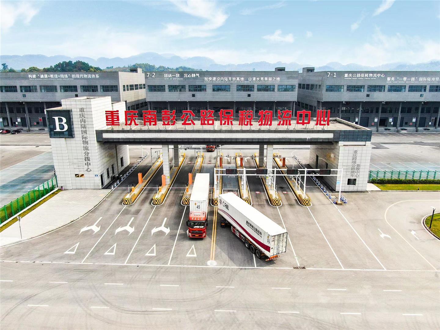 走进重庆南彭公路保税物流中心(B型)园区内,一辆辆大货车整齐排开,车头前的司机正围着货厢来回穿梭,仔细比对货物清单上的编号与纸箱标签,为即将开启东南亚之旅的货物,做最后的检查。