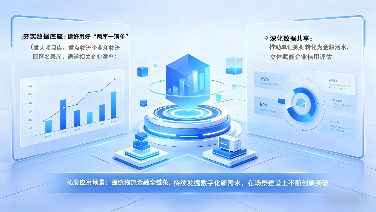 夯实数据底座:建好用好“两库一清单”(重大项目库、重点物流企业和物流园区名录库、通道相关企业清单),打通银企对接“最后一公里”。