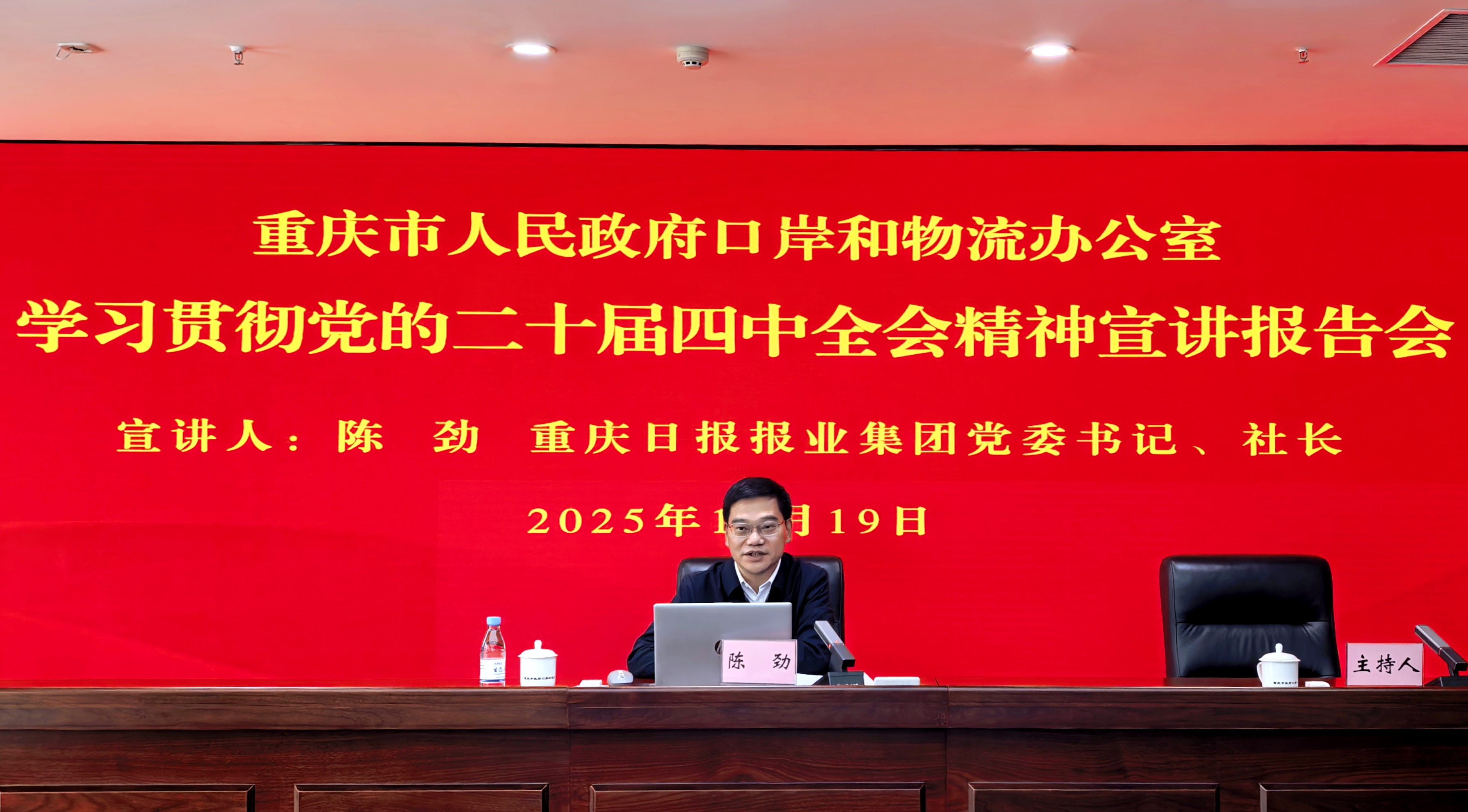宣讲报告会上,陈劲书记紧紧围绕习近平总书记在全会上的重要讲话和《中共中央关于制定国民经济和社会发展第十五个五年规划的建议》,深入解读全会召开的重大意义、《建议》起草情况,从“十五五”时期在基本实现社会主义现代化进程中的重要地位,“十五五”时期经济社会发展的指导方针、主要目标、战略任务、重大举措等方面进行了全面解读。再聚焦重庆坚持和加强党的全面领导,体系化推动四中全会精神在重庆一贯到底等方面进行了系统阐述。陈劲书记在总结运用丰富宣讲经验的基础上,把握好导向、基调、时度效,兼顾宣讲的艺术,坚持贴近实际、尊重规律,紧密结合重庆特色和口岸物流工作实际,运用事实数据、案例故事等讲清道理、阐明观点,为大家系统梳理党中央全面推进社会主义现代化国家建设的战略擘画和务实举措,让大家听得懂、记得住、用得上。