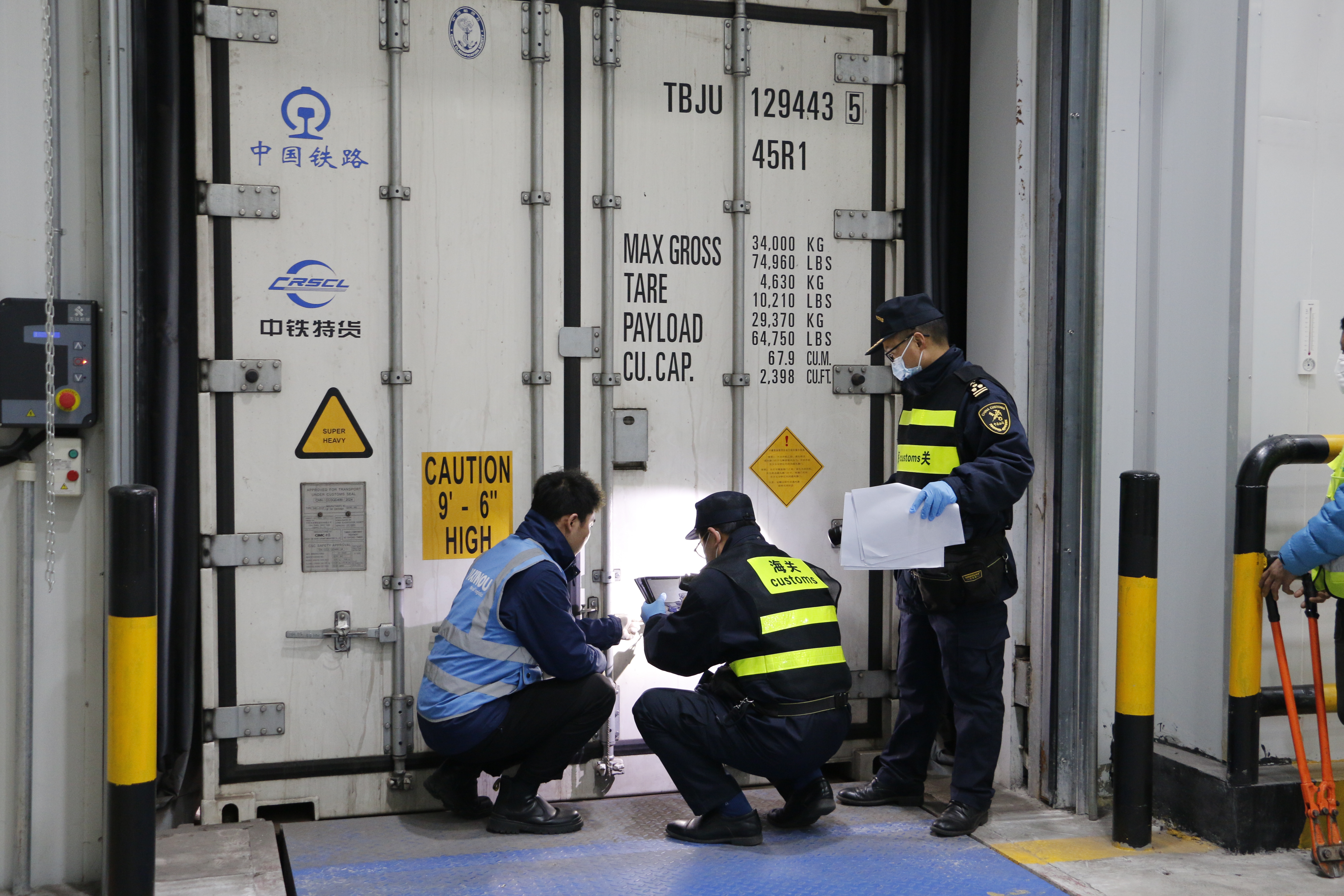▲1月24日,重庆港海关关员在核验进口香蕉集装箱封志信息。受访单位供图