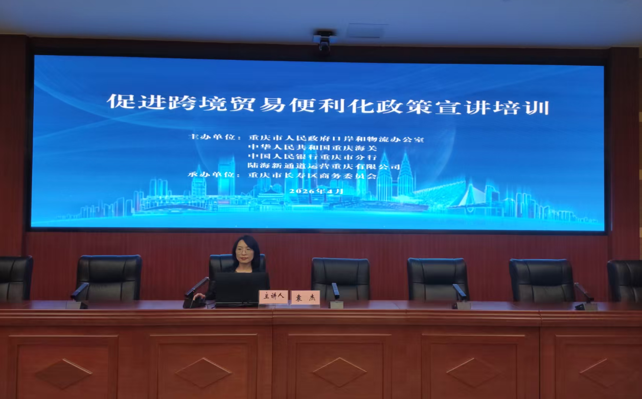 近日,市政府口岸物流办会同重庆海关、人行重庆市分行、陆海新通道运营公司联合开展2026年第二期跨境贸易便利化政策宣讲培训会,长寿区商务委等相关部门负责人、长寿区重点外贸外资企业负责人及代表参加。本次培训会聚焦促进跨境贸易便利化和金融领域相关举措,深入开展政策解读,推动跨境贸易便利化政策直达快享、金融服务精准落地,促进口岸物流降成本提效率,优化口岸营商环境。