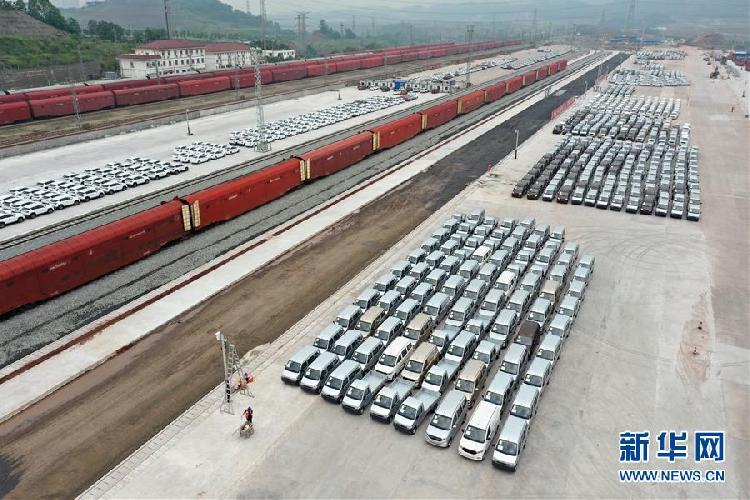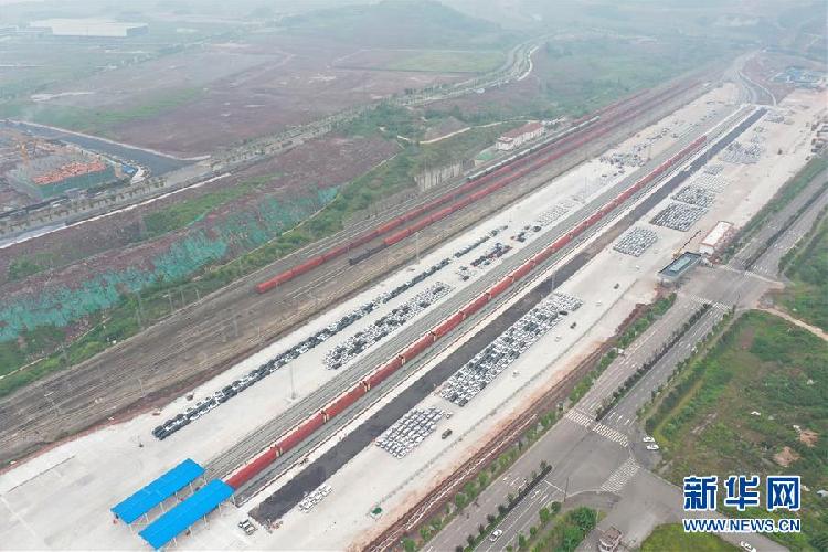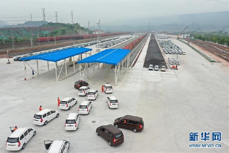 新华社消息,近日,由中铁八局集团承建施工的重庆鱼嘴物流基地正式开通,该物流基地主要满足重庆两江新区鱼复片区长安、上海通用五菱、北京现代等汽车企业的商品车铁路运输需求,具备年装卸汽车60余万辆的能力。新华社记者 唐奕 摄