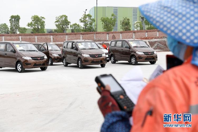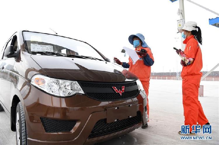 6月4日,在重庆鱼嘴物流基地,工作人员对即将装车的商品车进行信息核对。新华社记者 唐奕 摄